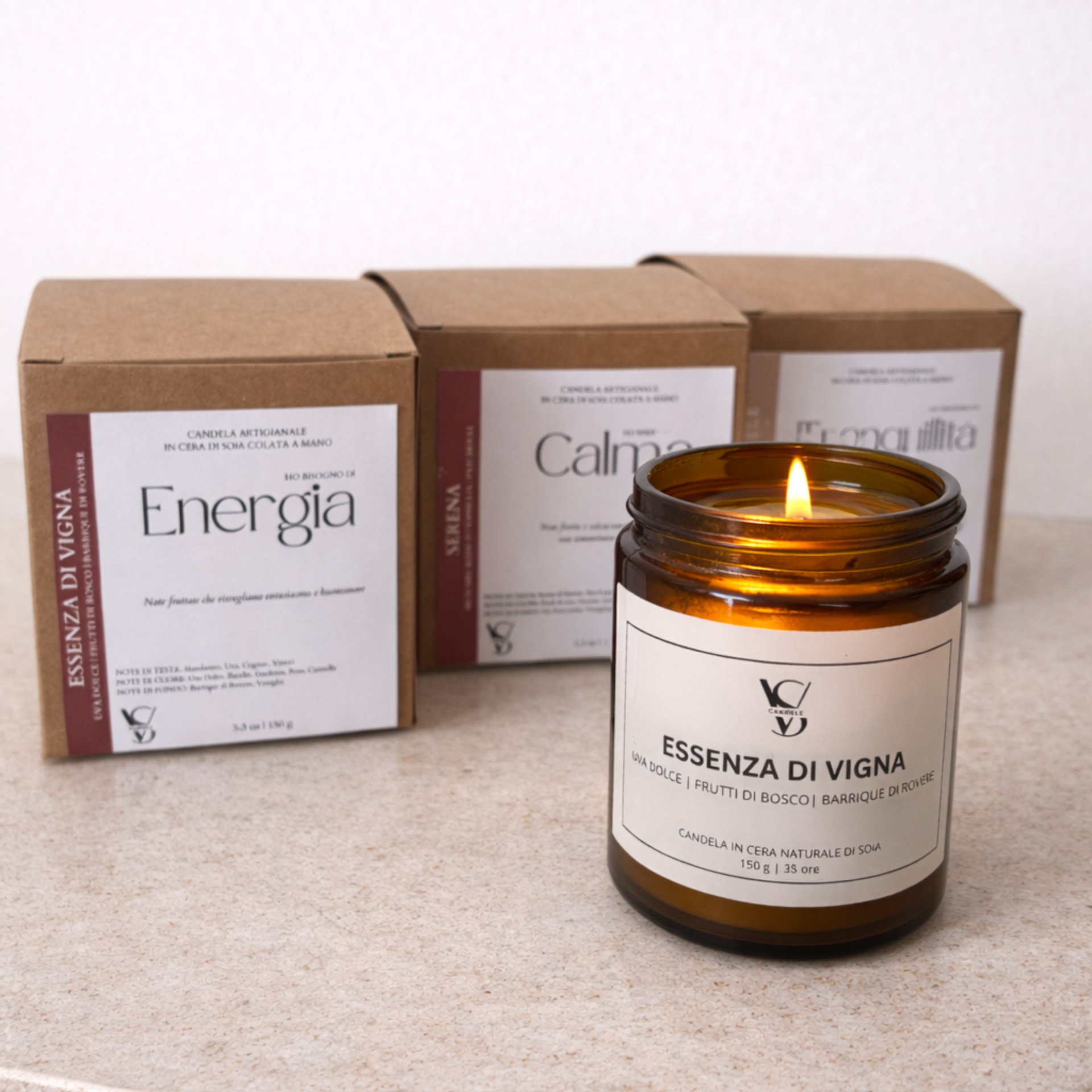 Realizzo candele artigianali con materiali naturali e packaging essenziale, personalizzabili nei dettagli per rispecchiare l’identità del brand.